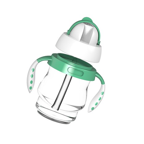 The Straw Cup's almond-shaped, spill-proof straw conforms to tot's mouth and minimizes mess, easing the transition from bottle, breast feeding, or sippy cup. The straw valve opens as soon as tot's lips touch spout for easy drinking, and the hinged cap closes to create a leak-proof seal. The removable handles provide a comfortable grip for your little one, and the cap and straw are removable for easy, thorough cleaning.