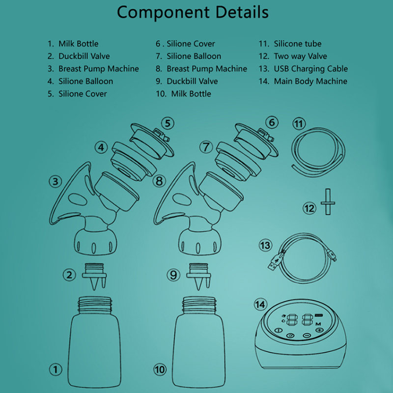 Dual Pumping System: Includes two bottles and tubes for simultaneous milk extraction, saving time.